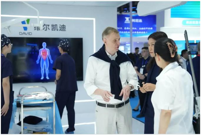 The CMEF opening ceremony guests and leadership team visited the David Medical booth accompanied by Mr. Zhu Haosheng, Assistant General Manager of David Medical.