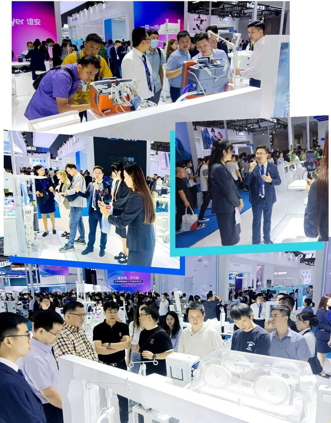 展位上,工作人員為參展人員詳細(xì)講解,操作演示設(shè)備。各類產(chǎn)品新穎的外觀,科學(xué)的人機(jī)交互,吸引眾多觀眾駐足圍觀。